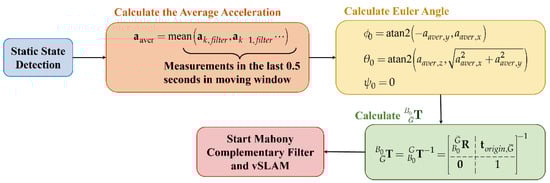 where is obtained by converting , which is derived from the Mahony complementary filter. Besides, it is worth mentioning that in the EuRoC dataset, every ten sample periods , both IMU and image information will be aligned, which is good timing to fuse them. Therefore, first define as: