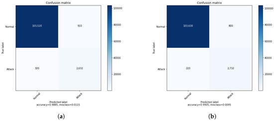 ConfusionMatrices of binary classification. (a) Normal DRL. (b) DRL with GAN.