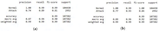 Binary classification report. (a) Normal DRL. (b) DRL with GAN.