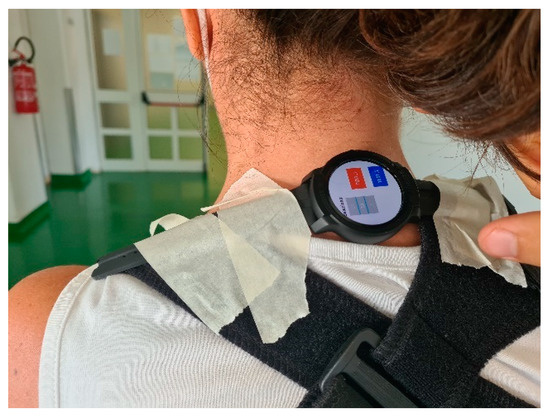 A commercial Android SW was chosen to function as both a sensor and actuator, creating a system that is effective and wearable. The SW was fastened to a wearable cloth to ensure the correct positioning of the unit. It is important to note that the SW must be positioned precisely in order to correctly identify the trunk inclination of the subject and provide a perceptible haptic cue.