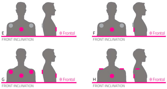 On the other hand, to restore correct frontal inclination, we tested configurations involving one single actuator centrally positioned on the sternum or the back, which was also proximal to the bone, as represented in schemes E and F in Figure 5. The other solution, involving three SWs (schemes G and H), was dismissed because it was perceived as too intense and annoying to correct frontal trunk inclination.