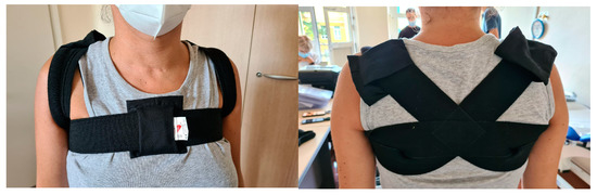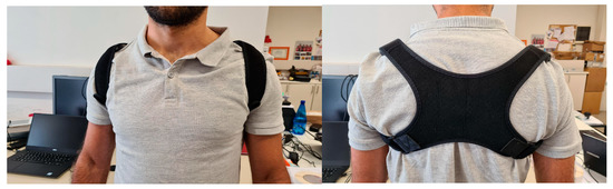 Therefore, it was decided to develop a tailored harness inspired by an existing postural band that pulls the shoulders back. This solution guarantees the more precise positioning of the SWs and better contact with the body, allowing improved perception of the signal while helping with postural training due to its function.