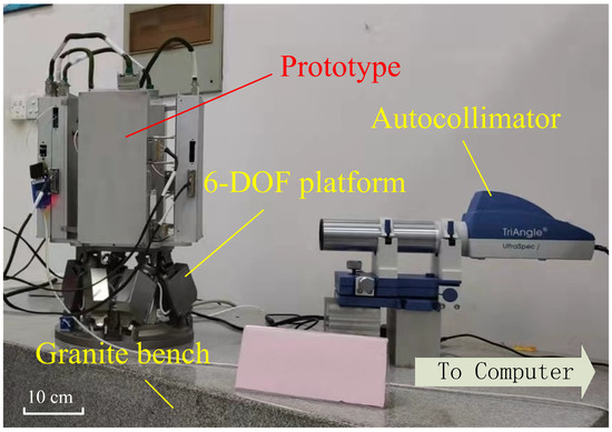 The prototype is installed on a 6-DOF positing platform. Since the platform’s repeatability is only 2 rad, an autocollimator with 0.25 rad (0.05 arc-sec) accuracy is employed to monitor the attitude of the sensor head. All the instruments are placed on a granite bench to reduce the influences from seismic vibrations, as shown in Figure 5.