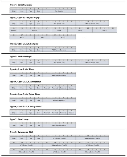 A minimum of 3 bytes (24 bits) is required to record each of these data. In addition, for synchronization purposes, a millisecond mark is also transmitted with the data. Thus, the minimum payload that the protocol must assume is 8.8 Kbps, which corresponds to a constant rate of 100 samples × 3 values × 24 bits and 100 samples × 16 bits (milliseconds mark). To be as efficient as possible, a single Ethernet frame is used to transmit a block of samples. The maximum size of the Ethernet frame is 1518 bytes, so we will transmit blocks of 100 samples (1100 bytes and 16 bytes of header) every second, as two seconds would exceed the maximum size and we will have to use segmentation.