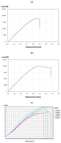 Selected tensile strength test results: (a) lever, (b) cap, (c) tensile strength of the cap—comparison of results for individual samples.