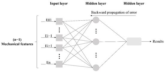According to the BPNN structure constructed in Section 2.2, the number of input layer units was 28, and the number of output layer units was 1. We learned and trained the monitoring data and numerical simulation data samples of the mechanical properties of multiple-measuring-point mechanical members through the following steps: