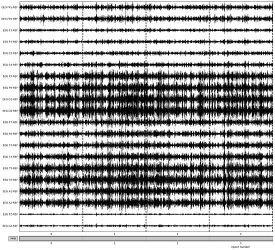 The EEG data are then split into 3 s epochs to be evaluated for quality. With each epoch being 3 s of the 8-minute (480 s) recording, the process yields a total of 160 epochs of recording details. Figure 6 illustrates the results of 3-s epochs in recordings.