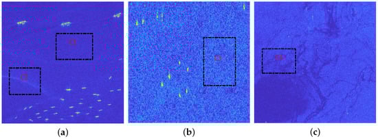 where represents the number of correctly detected ship targets, is the number of false alarms, and represents the number of real targets in a SAR image. As shown in Equation (11), the larger the value of FoM, the higher the target detection rate.