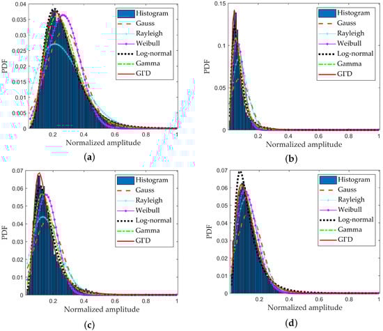 where and represent the theoretical probability density function (PDF) and histogram probability of measured data, respectively. is the length of the data sequence. The smaller the MSD value is, the better the clutter fitting effect will be.