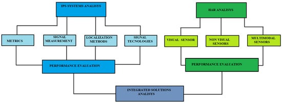 We have found that, in the literature, there is little experience on the effectiveness of the combination of IPS and HAR technologies. This work aims to explore possible systems that can offer a comprehensive solution. The methodology used in developing the work was based on the in-depth analysis of the activities’ multiple aspects of the localization and recognition approaches. We report the different technologies available and examine techniques and algorithms. We compared them with each other, highlighting advantages, disadvantages, and characteristic elements. We also research the testimonies on the integrated and compared systems to identify a possible solution that could satisfy different contexts. Lastly, the surveys confirm the issue’s complexity and the need for new research efforts. The work concludes with possible scenarios for future developments.