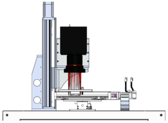 The motion control system includes galvanometer scanning motion control and three-axis motion. Among them, the galvanometer lens in the system adopts a two-dimensional galvanometer, and there are scanning lens X and scanning lens Y inside. The relevant parameters of the galvanometer lens are shown in Table 1. The three-axis motion includes three motion axes, X, Y and Z, among which the X and Y axes are responsible for the movement of the processing platform. The Z axis moves the galvanometer up and down so that it can focus and defocus the laser. The system motion axis structure is shown in Figure 4.