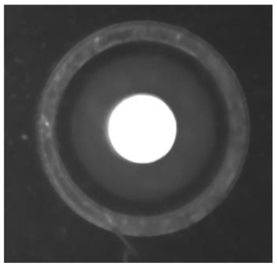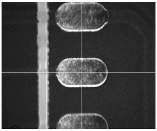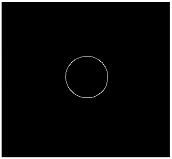 Common marking points on the circuit board include circles, crosshairs and other figures. The setting diagram of marking points on the circuit board in this paper is shown in Figure 9. In the actual detection process, the marker is usually set far away, and the center of the marker is asymmetric. Therefore, the image acquired by the camera should be preprocessed, and the noise on the image should be eliminated by median filtering. The median filtered image is shown in Figure 10. After removing the noise, the image is binarized and segmented. The image after binarization is shown in Figure 11. The pixel edge points in the binarized image are extracted, and the extracted image is shown in Figure 12. Since the image after point imaging will be an ellipse rather than an ideal circle, circle fitting is required.