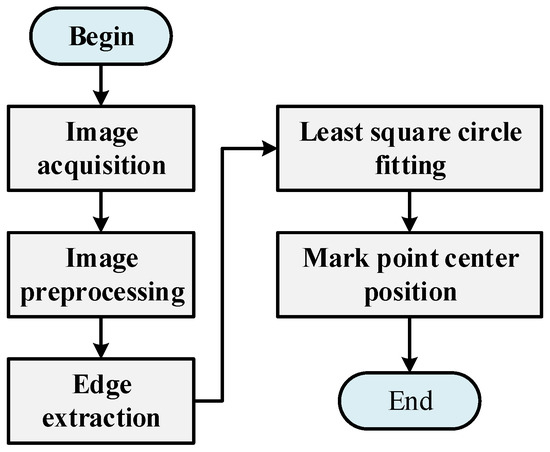 In the actual machining process, the placement position of the workpiece is not completely parallel to the machining plane, so it is necessary to calculate the mark points on the circuit board in the system and calculate the transformation relationship between the workpiece coordinate system and the machining coordinate system of the oscillator meter [21]. At the same time, according to the position of the marker in the pixel coordinate system, and the transformation relationship between the pixel coordinate system and the galvanometer processing coordinate system, the relationship between the solder joint position and the galvanometer processing coordinate system can be obtained.