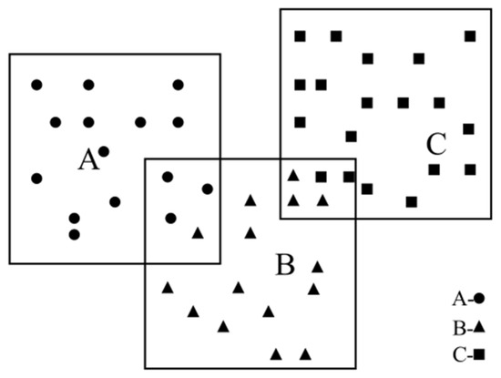 There will be intersections between the processing frames obtained by the full coverage solder joint processing frame generation algorithm. For the problem of attribution of solder joints in the intersection part, the position of the processing frame of the solder joints belonging to the cluster has the solder joints in the intersection part. The schematic diagram of the attribution of cross solder joints is shown in Figure 16.