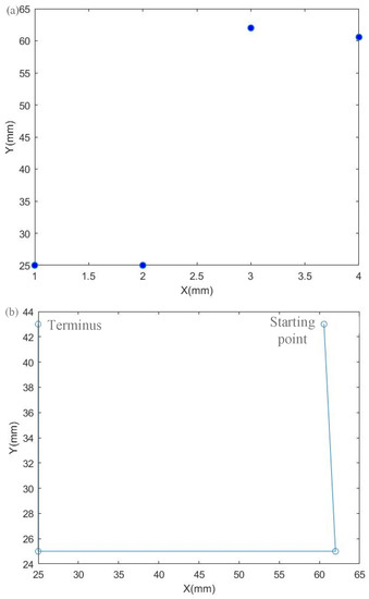 Optimization of the movement path between processing frames. (a) Processing frame center point distribution. (b) Processing frame center point optimization path.