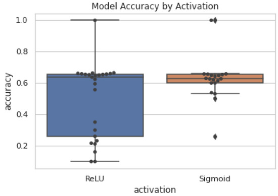As can be seen in Figure 10, using the same network sphira (Figure 3) with different approximated activation sigmoid functions (Equation (2)) and ReLU (Equation (4)) dramatically affects the precision of the neural network over multiple training attempts with randomised weights. However, the accuracy of both on average is roughly equal within a few percent. This shows that in our implementation, backpropagating the ReLU approximation may indeed cause some instability more frequently. Sigmoid, in contrast, is a static approximation which may be part of the reason for its greater stability, and thus consistency, in providing randomised weights to the rest of the network. We can see that both the sphira (Figure 3) and constellation (Figure 9) networks can produce acceptable results on the testing set while computing over cyphertexts and plaintexts. Our networks can be seen working in both classification and regression problems, Fashion-MNIST, and strawberry yield prediction, respectively.
