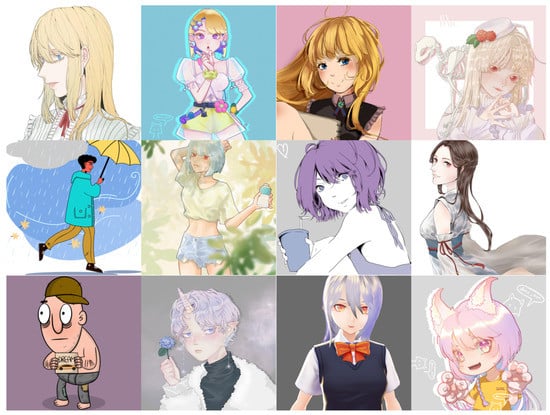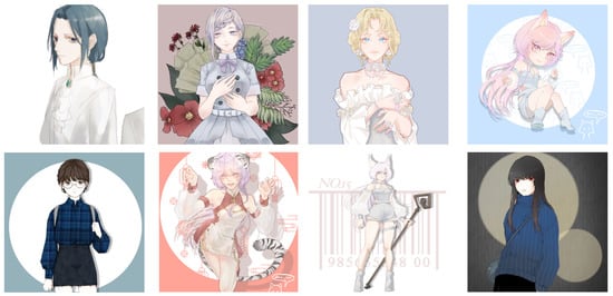 - Pixiv. Available online: https://www.pixiv.net/ (accessed on 18 October 2022).