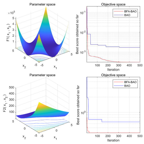 Simulation results of performance test functions on BAO and BFA-BAO algorithms.