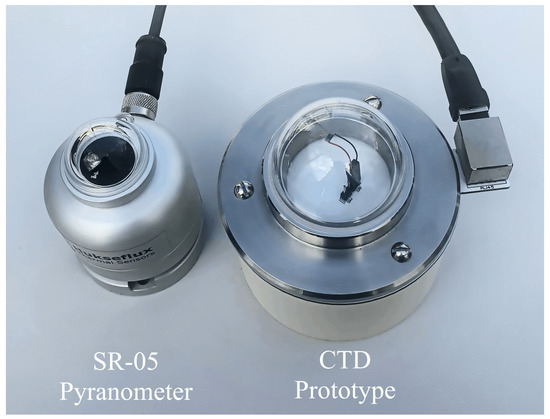 Afterwards, to validate our proposed architecture, we compared the experimental results with the Hukseflux SR-05 thermopile pyranometer. Figure 4 shows the commercial SR-05 pyranometer and proposed CTD prototype from a perspective view.