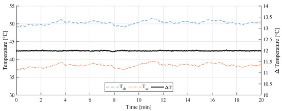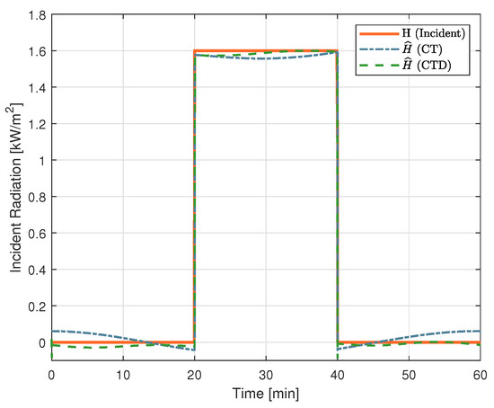 Regarding the temperature differences shown in Figure 13, Figure 16, and Figure 19, it can be concluded that, as the incident radiation increases, the ambient temperature also increases. In all the cases presented, the controller managed to keep the temperature difference stabilized at 12 C and thus drastically reduce the influence of the ambient temperature variation on the measurement.