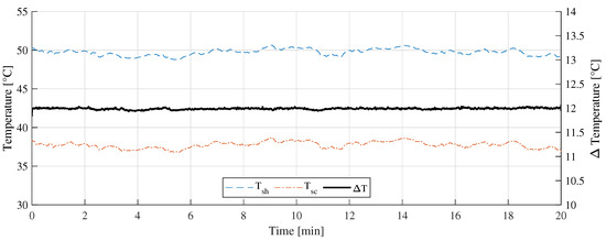 Applying the parameters from Table 3 to (15), it is possible to obtain the relation of resistances that allow a constant temperature difference between hot and cold sensors. The resistance values obtained for the parameters used were: k, and M. These resistances values allow a fit of 99.6% in the comparison of the transfer functions of the hot branch and the cold branch.
