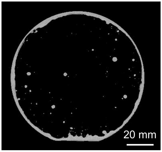 The room-temperature bonding of the transferred getter layer was evaluated by SAM. Figure 9 shows a void-mapping image of the bonded substrates. The white area indicates that the ultrasonic wave was reflected by the gap at the bonding interface. Some voids coincided with the areas where the Au/Ti/Au film was not transferred, as shown in Figure 6. Additionally, other voids were presumably caused by the new particles adhering to the surfaces after the transfer process. The ratio of unbonded areas is 9.5%; it is expected that these unbonded areas will possibly disappear when the cleanliness of the process environment is improved.