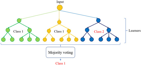 The random forest is composed of several decision trees working independently on the same problem. Each produces a decision, and it is the assembly of the decision trees that will give an overall estimate. A random forest works on the principle of bagging (Figure 9). The first step consists of dividing a dataset into subsets (decision trees), then proposing a training model to each of its groups. Finally, the results of these trees are combined in order to obtain the most robust prediction.