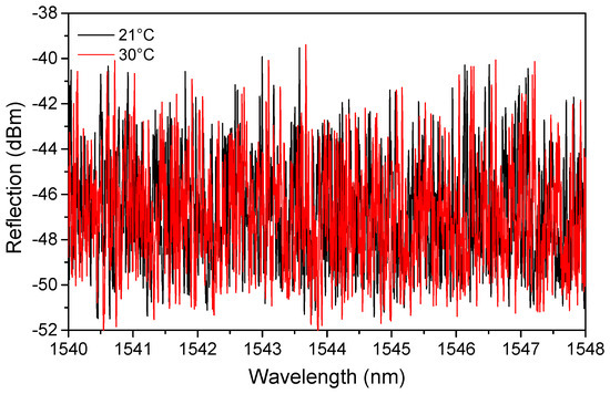 Both can lead to a reduction in the signal-to-noise ratio and, in the worst cases, to an increase in the uncertainty associated with the measurement. At very high TID and/or neutron fluence, depending on the initial grating reflectivity, the peak can also be completely erased and the sensor stops working [24]. It is worth noticing that, if the periodical structuration is still present, the Bragg peak can be completely imperceptible within the noise in the transmission spectrum, but it should be detectable in the reflection one, despite its very small reflectivity. An example is reported in [24], where the reflectivity of an FBG (written in a Ge-doped fiber with an fs-laser at 800 nm and treated at 372 °C for 72 h) was reduced from 5% to 0.2% after a neutron fluence of 3 × 1019 n∙cm−2 (neutron energy of ~1 MeV) and a γ-dose of 1.5 GGy at 250 °C: the peak was still evident in reflection but not in transmission.