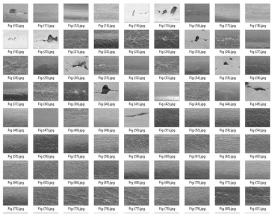 In recent years, feature learning using deep neural networks has been applied to various computer vision and classification problems, and has been demonstrated to be successful in many fields. Multiple benchmarks can be used to describe the classification accuracy of visual data. Usually, each has a large number of samples. To achieve accurate crack image segmentation, our team, over the course of a year, collected 380 images determined to contain crack damage from more than 20 rails under different weather conditions, different accumulated traffic volumes, and a variety of wear situations. As shown in Figure 5, the set of images in the collection has a complex variety of lighting conditions. The cracks are of various types, including grain structures on all rail surfaces. To improve the resistance of the convolutional network to environmental impacts, the network was only classified before training, and no other image preprocessing operations were performed. The labeled images were divided into three three categories: rail surface, rail crack, and rail damage. All fine cracks are marked during the labeling process, although manual inspection of these cracks requires careful magnification in order to ensure that the trained neural network had as comprehensive a crack recognition ability as possible.