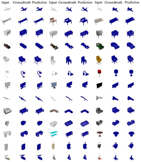 Figure 5 shows the reconstruction effect of 13 categories of 3D-SSRecNet on the ShapeNet dataset. The reconstructed point cloud resolution shown in Figure 5 is 2048.