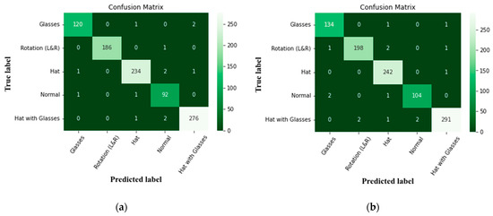 Confusion matrix of face objects (a) without optimization, and (b) with optimization.