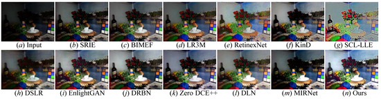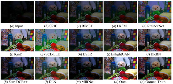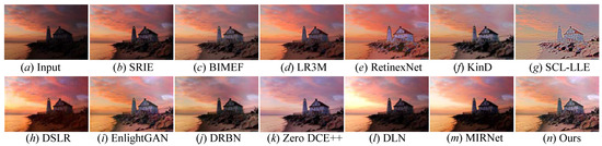 - Xu, K.; Yang, X.; Yin, B.; Lau, R.W. Learning to restore low-light images via decomposition-and-enhancement. In Proceedings of the IEEE/CVF Conference on Computer Vision and Pattern Recognition, Seattle, WA, USA, 13–19 June 2020; pp. 2281–2290. [Google Scholar]