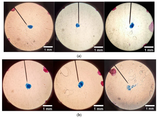 The system comprises a cavity within a thin polytetrafluoroethylene (PTFE) enclosure frame into which a mass (mo) of PLA resin material (with or without irradiation) is placed evenly within the cavity space–both of which are shown in Figure 4. The area dimension of the cavity was chosen from practical considerations to align with that of a single flattened PLA resin bead (commonly sold as feedstock worldwide by NatureWorks, LLC.)–such that, upon compression, a measurable quantity of the molten PLA material can egress out of the cavity. PTFE was chosen as the frame material due to its non-wetting property and ability to withstand adhesion to molten PLA, thereby permitting the controlled flow of PLA under pressure and heat. This coupon is then compressed in a hot press, during which the molten PLA is allowed to flow out of the cavity (i.e., create a mass release “mr”) to differing levels, depending on irradiation-based changes in overall relative viscosity. An extra technical issue needed attention. Under hot press compression, molten PLA adhesion to upper–lower steel surfaces must be avoided. To achieve this requirement, during the hot-press compression stage, a thin sacrificial release liner was required between the frame and the steel sheets on either side. Through trial-error, a commonly used food industry packaging material sold in grocery stores-parchment paper from Big Chef® was found to be suitable. The parchment paper specifications are: thickness: 0.045 ± 0.005 mm, maximum temperature for safe usage: 218 °C; non-wettable to PLA melt and water–in laboratory tests the parchment paper exhibited 106.5 ± 6.7 degrees contact angle with 0.5 µL deionized-filtered water drop.
