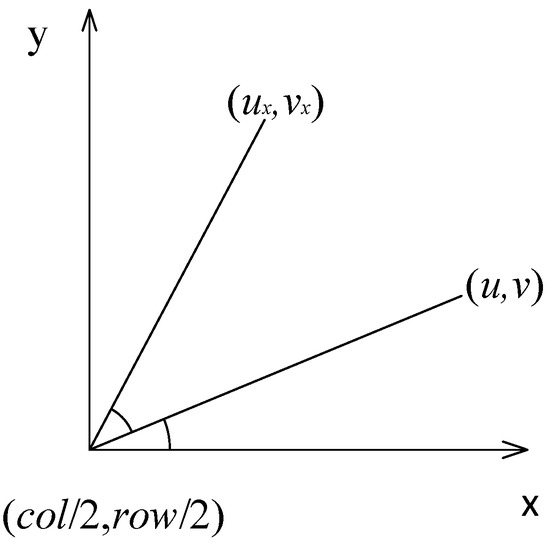 In Formula (2), is the coordinate of the vertex of the circumscribed rectangle before rotation, is the new coordinate of the vertex of the circumscribed rectangle after rotation, and is the angle of rotation. The image was rotated around the center point , where and are the numbers of columns and rows of pixels in the original image, respectively.
