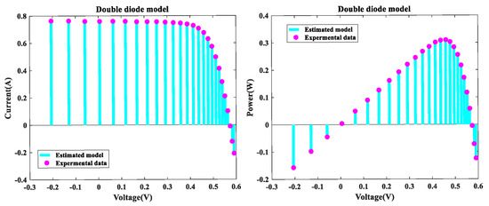 As a result, it is vital to monitor the real-world performance of PV modules by taking current–voltage readings during operation. A mathematical model and parameter identification are usually required to model PV systems. The single diode (SDM) and double diode (DDM) models are the most popular and commonly used [5]. However, real PV model behavior is heavily reliant on parameters that are not known in advance, which can be unpredictable due to hardware maturation, failure, and unsteady operating conditions. Precise identification of the PV parameters during development may thus be necessary to assist control, enhance PV frameworks, and eventually organize applications [6].