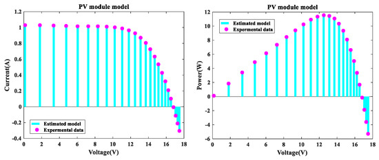To conduct a thorough evaluation of these photovoltaic modules, the root mean square error (RMSE) is used to quantify the contrast as in Equation (6), where N is the number of exploratory data points; this metric is sometimes referred to as the objection function [60]. As a result, in this case, the optimization strategy is focused on minimizing the root mean square error in conjunction with tweaking the arrangement vector x across all iterations.