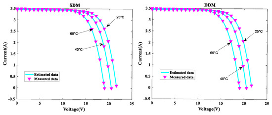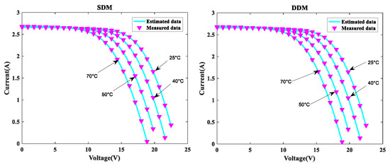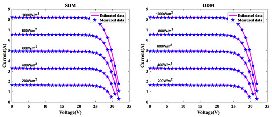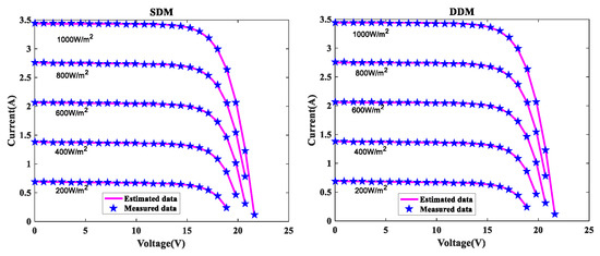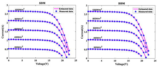 However, we should keep in mind that despite the core ideal of the “no free lunch theory” (NFL) [58], metaheuristics cannot reject the benefits of deterministic parameter estimation techniques in terms of various factors that merit our attention. In the previous work, there is relatively little research on the PV parameters of single-crystal and double-crystal diodes at the same time. In addition, the research on the robustness of equipment exposed to a high voltage or harsh temperature is relatively insufficient. Alternatively, they may still be stuck in a state of search stagnation known as premature convergence; this problem is shown in current implementations of metaheuristics for PV cell parameter estimation by a relatively large value of root mean square error. Furthermore, the performance of some metaheuristic methods is dependent on predetermined parameters that must be appropriately set by users, leading to a high risk of stagnation and a weakening of their ability, which means that the majority of metaheuristic strategies can be added to extra special operators for various characteristics of complex and changeable problems. Furthermore, certain metaheuristic algorithm efficacies are reliant on user-defined parameters, which increase the possibility of stagnation and deterioration and some improvement room may still exist among some algorithms for this multimodal and nonlinear optimization problem. This study’s objective work on PV parameter recognition proof has the additional feature of being nonlinear and multimodal with several neighboring valleys, making it more difficult than other typical challenges. Stagnation is also more likely, posing a difficult dilemma for traditional approaches. Thus, it is necessary that developing an efficient and notable optimization technique for PV parameters estimation is still a problem worth studying.