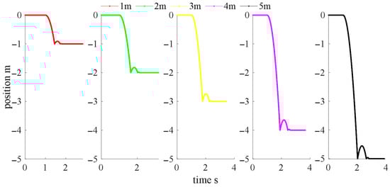 Heights of 1, 2, 3, 4, and 5 m were simulated, and the falling trajectory is shown in Figure 5.