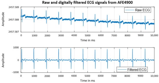 Raw (unfiltered) and digitally filtered ECG signal recorded with SPECTRE 3.0.