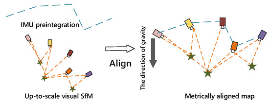 Illustration of the visual-inertial alignment process for initialization.