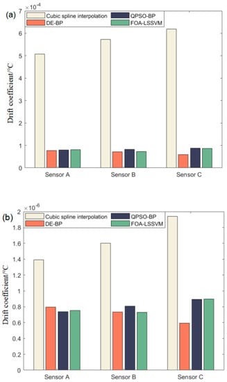 The calibration data of different sensors were substituted into the different algorithms to perform temperature compensation, and the comparison of the results is shown in Table 6.