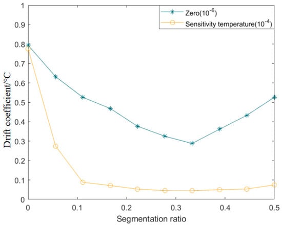 Trend of the sensor drift coefficient with different segmentation ratios.