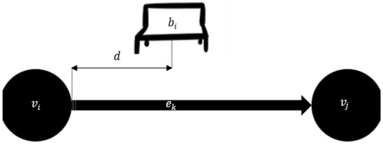 The approach to optimizing the SAV dispatcher began by gamifying it. The problem is first set-up as a Markov decision process (MDP). First, assume there is a fleet of m SAVs ready for deployment. The network in question can be modeled as a directed connected graph N = (V, E). Throughout the network, setup n pick-up/drop-off stops. These are enumerated B = {b1, …, bn} and can be located by placing it at a distance d from the source node, as indicated by Figure 11.