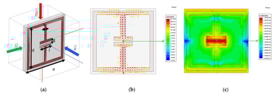(a) HFSS unit cell model (b) Surface current density (c) Electric field distribution.