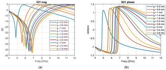 HFSS Parametric simulation results (a) S21 magnitude (b) S21 phase.