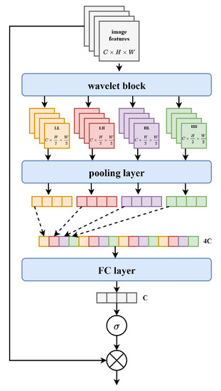 where is the input image features, and represent the four sub-bands, the size of the sub-band feature map is , and denotes the wavelet transform function.