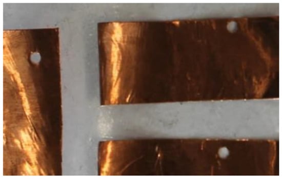 - Polyimide Tape–Insulator—This mechanically supported both the copper taffeta and copper tape by keeping it in place and decreasing the stress on the copper tape’s surface. This was especially useful on the joint when the copper tape was punched through the FCI Clincher, helping to resist the tear on the copper tape. This provided a protective layer from both the copper surfaces preventing them from tarnishing.