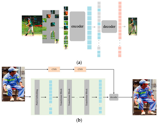 - He, K.; Chen, X.; Xie, S.; Li, Y.; Dollár, P.; Girshick, R. Masked autoencoders are scalable vision learners. In Proceedings of the IEEE/CVF Conference on Computer Vision and Pattern Recognition, New Orleans, LA, USA, 16–24 September 2022. [Google Scholar]