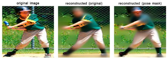 In the original MAE, the training dataset used for image reconstruction was ImageNet-1K (IN-1K), which contains about 1.2 million training images, and thus, a sufficient amount of data ensured the generalization of pre-training. The MS COCO dataset contains 118,287 training images, which have already been used for object detection, pose estimation, image segmentation, etc. We cropped person instances using object detection annotations to obtain a total of 262,465 images. After the MAE was trained for 2000 epochs, its weights were used to generate reconstructed images of the same amount of data from MS COCO. Compared with IN-1K, only 22% of the data was used to pre-train the MAE using Pose Mask, which raised the concern of insufficient data. As shown in Table 1, regardless of the masking strategy, we observed that the pre-training of MAE for human images was stronger than that of IN-1K pre-training, even with nearly 80% less data. We think this was because the single class of images made the model specialized at recovering occluded limbs. The impact of data quantity for pre-training is worth further exploring; therefore, we will test the performance changes by adding more human images in future work.