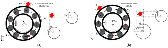 Schematic of out-of-balance force of outer ring: (a) time elapsed ; (b) time elapsed .